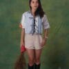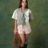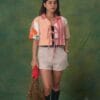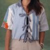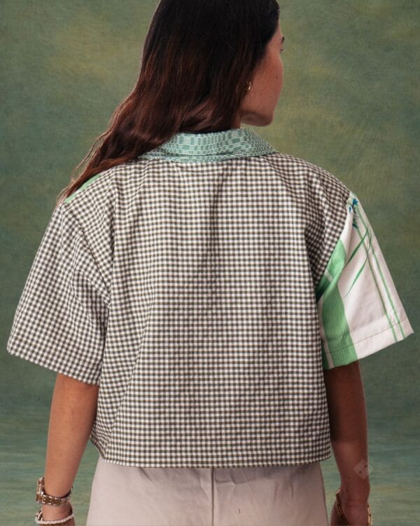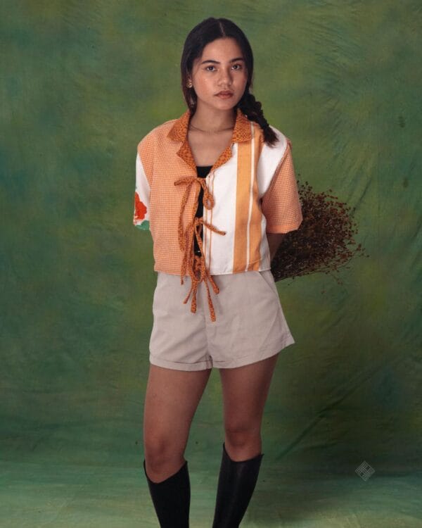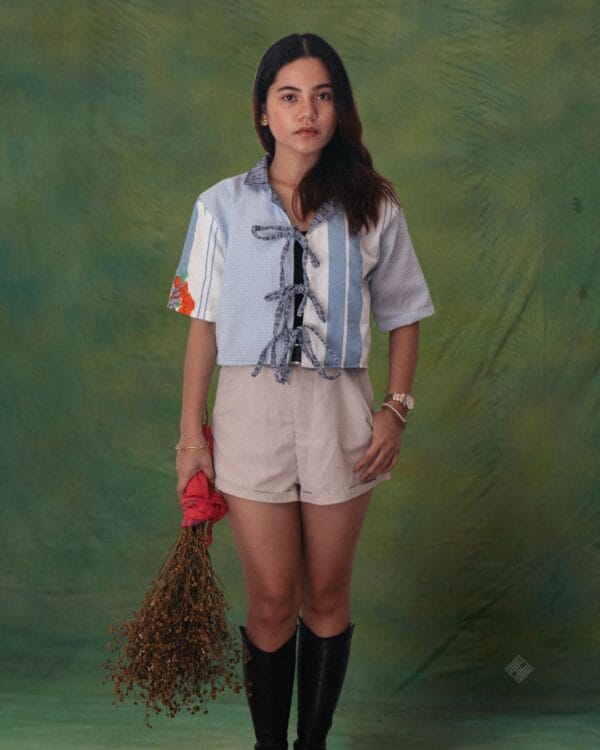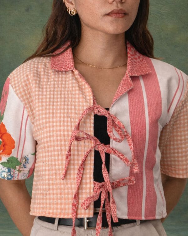 A playful reimagining of the beloved kumot florals of our childhood, the Lambingan Tie-Front Blouse brings together patchworked weaves, gingham textures, and heritage-inspired stripes in one modern silhouette.